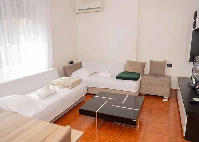 Pour votre confort, l'appartement comprend une cuisine équipée avec une cafétière/théière électrique, un réfrigérateur et de la vaisselle fournis. L'aéroport le plus proche est international de Tirana, à 20 km de la pièce, et l'arrêt de bus Libri Universitar est à 5 minutes à pied.